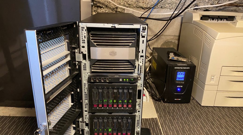 After an exhaustive search of TradeMe for a server, I found a great deal for an old HP Proliant ML350 Generation 8 tower server. This machine appealed to me, because it used DDR3 ECC Ram (which is dirt cheap), had dual processors (loads of grunt), dual power supplies and had onboard RAID functionality (resilient).